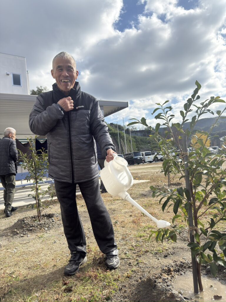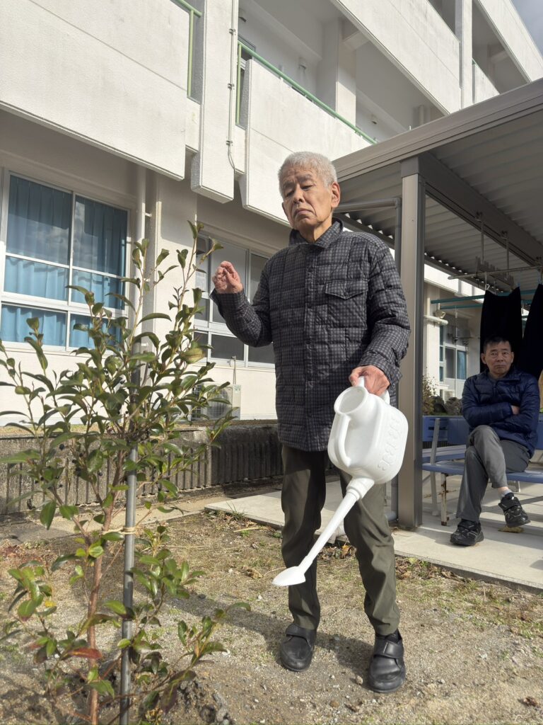 花壇の他に、グラウンドに植えた榊にも水やりを行いました!