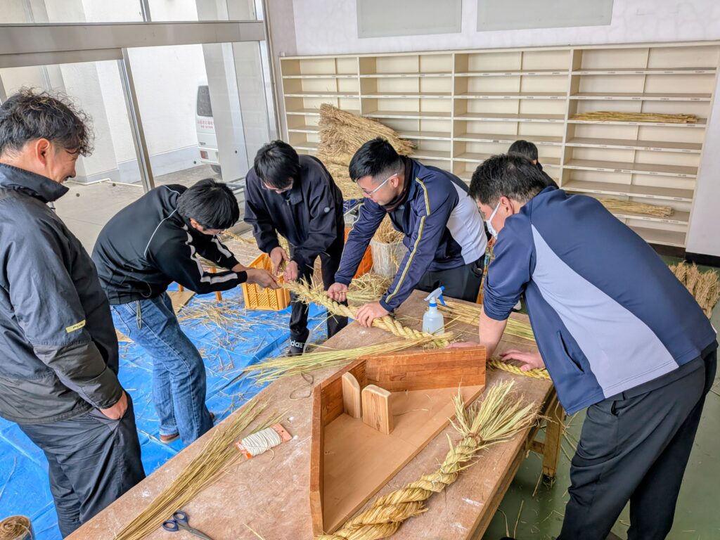 2月11日(水)「建国記念日」神社祭を開催します。当日、神社へ奉納する注連縄を男性職員にて作りました👌とても立派な注連縄が完成した模様です