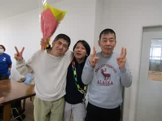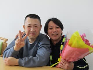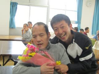 そして、担当利用者さんから花束と首飾りの贈呈です