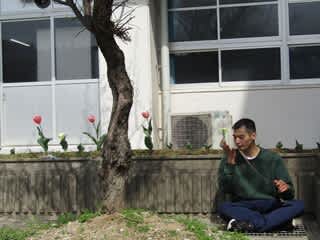 とても暖かい日ですねチューリップのお世話をしながら歌を歌ってくれましたやさしい歌声素敵です