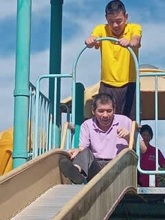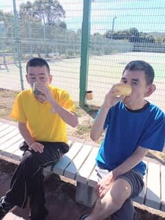 ふれあい交流広場にて遊具で遊び、その後におやつを食べたよ