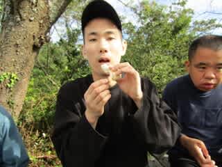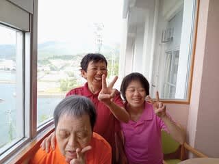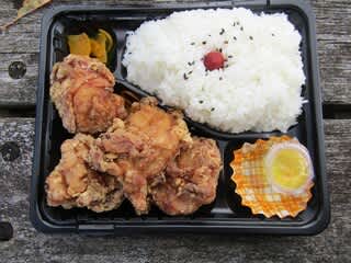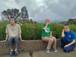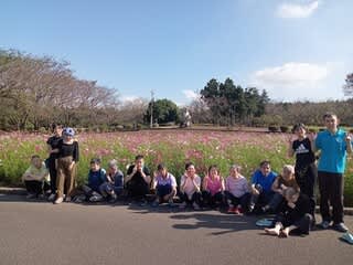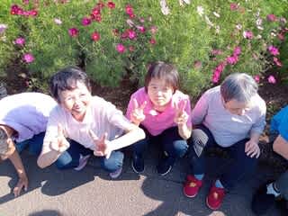 みんなで唐揚げ弁当を食べた後、コスモスや景色を見て楽しみました