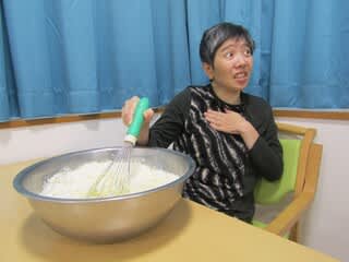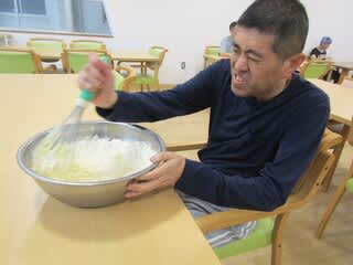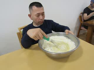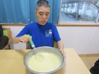 さて、何が出来るでしょうか❓ 材料を入れて混ぜます