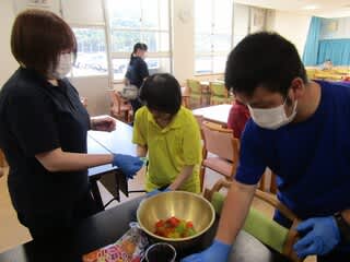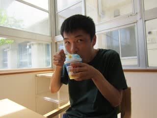 今日は、夏の風物詩「かき氷」を作りました利用者の方にも手伝ってもらい
