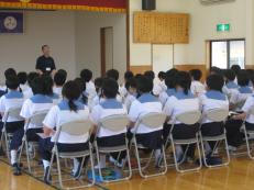 Img_0002_5  南串中学校の3年生が、交流学習の為来園されました。今日は、施設長からあけぼの学園の概要と障害者についての講話があり、その後、施設の見学をされました。掲示板のバイキングの写真を見て、給食もこんなのが出たらとうらやましそうな声が聞かれました。