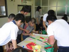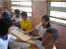 Img_0012_1  南串中学校の3年生が交流学習の為、来園され一緒に作業を行いました。希望の作業班に分かれ、楽しく作業活動を行う事が出来ました。参加した中学生の感想は、利用者の皆が明るく、しゃべりやすくて楽しかったと話してくれました。自分達で出来る事は自分で行っているのを見て、すごいなと話してくれる人もいました。
