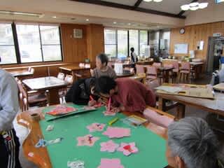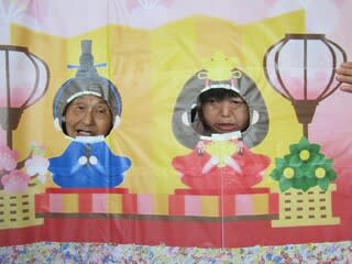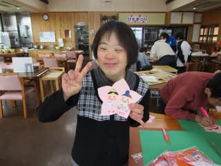 今日は、あけぼの学園の「ひな祭り」です。朝から女子利用者で、食堂を飾りつけをしました