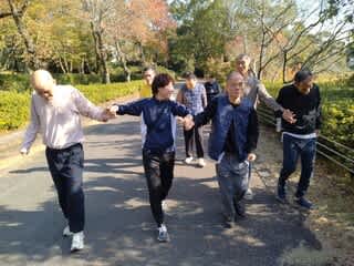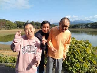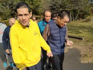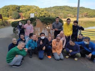 秋をまだまだ満喫しています男性利用者は諏訪の池外周を自然散策しました