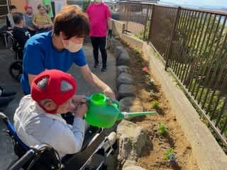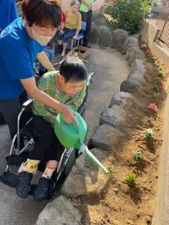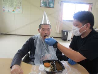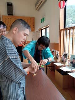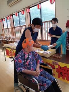 今日は、皆さん楽しみにされていた倉越祭でした。午前中は、職員手作りの足湯に浸かったり、女性の利用者様はおしゃれをしたりしました。