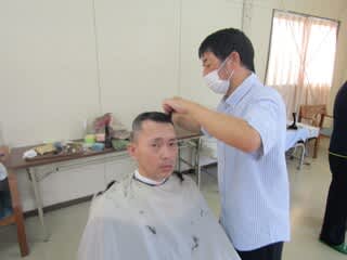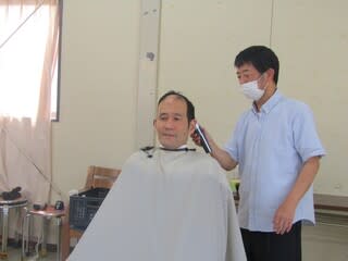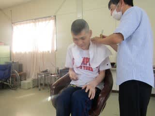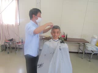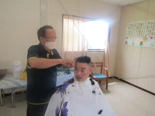 本日、町内の理髪店より来園され本館利用者の散髪をしていただきました。