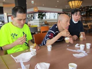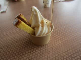 食後はみんな一致団結で、ソフトクリームに決まりました。カステラのラスクの入ったソフトクリームはとれも美味しかったです