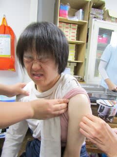 近くのお医者様に来ていただきインフルエンザの予防接種をしました。