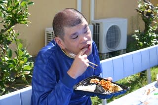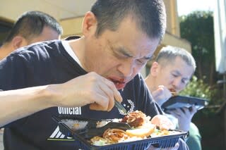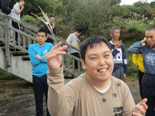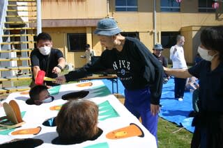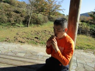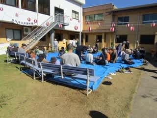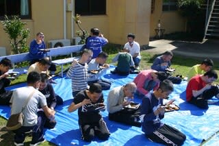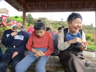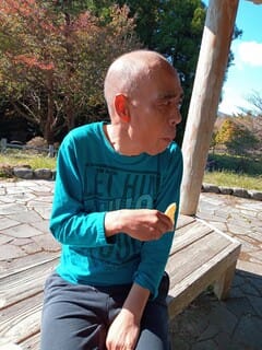 食欲の秋ですねぽかぽかとした秋空の下で男性利用者の方はいつもと違う形で昼食でした