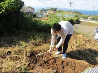 鍬を持って掘り起こしのお手伝いもしましたよ