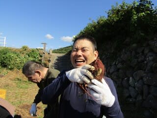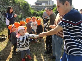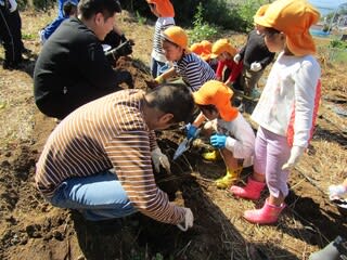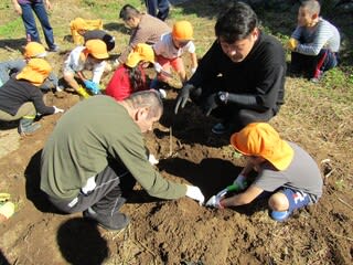 10/19(水)八幡保育園の園児の皆さんと一緒に園で育てた芋を掘りました