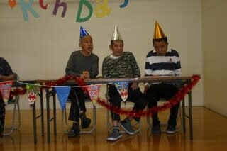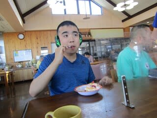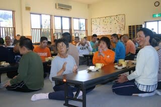 学園に戻って、1階と2階の利用者さんで合同喫茶をしました