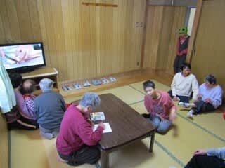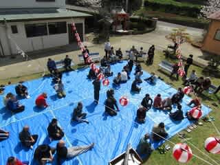 その後、花見をしながらコーヒーとお菓子を食べ、カラオケ大会開催です。