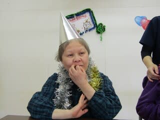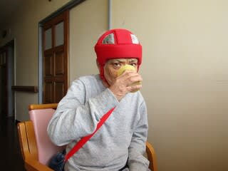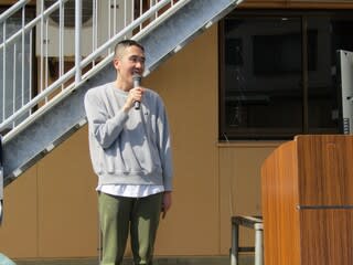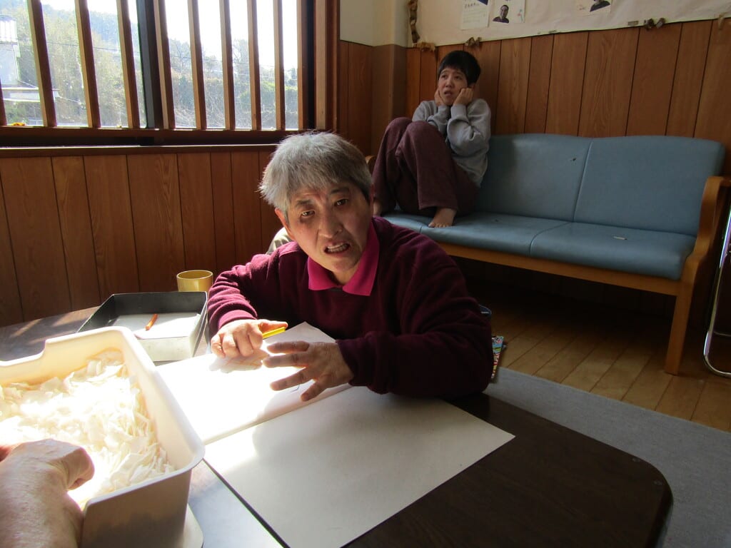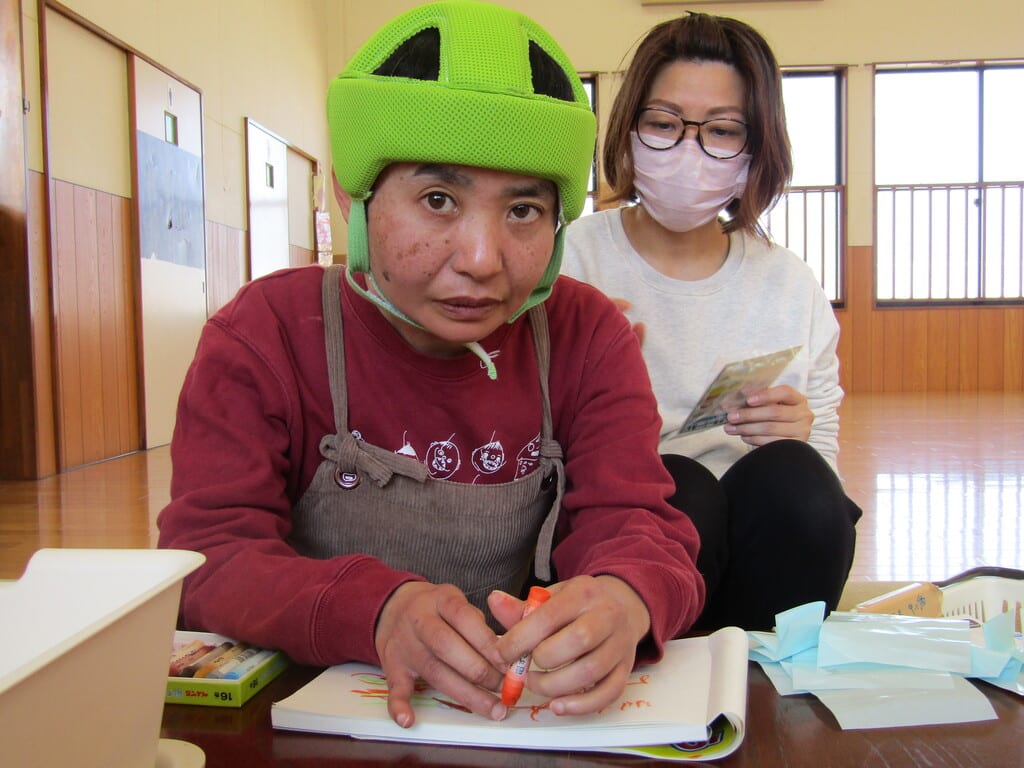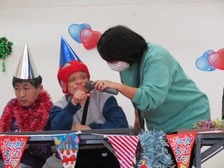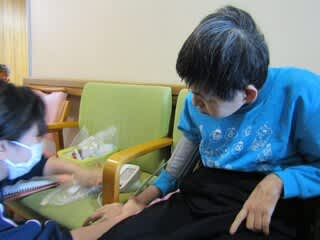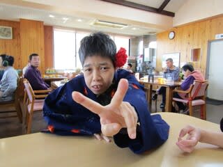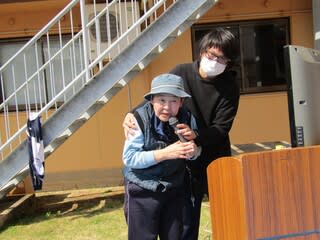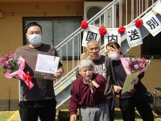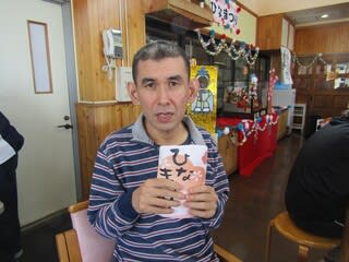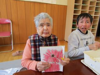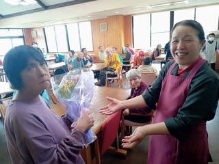 利用者様より、皆さんが書いた色紙と花束贈呈です。