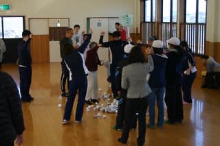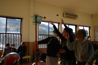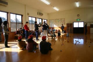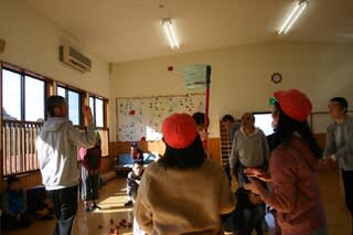 今回は、玉入れを一緒に行いました 色別に「エイ・エイ・オー」と気合を入れスタートです