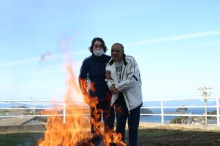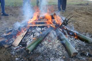 今年一年の健康を祈願し、煙をあび鬼火で出来た炭で