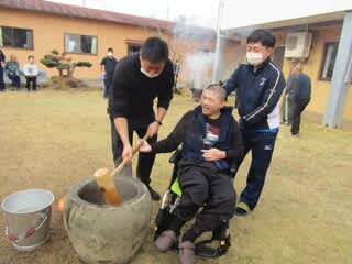 早く、お餅をつきたくて順番待ちをされている利用者の方が、たくさんいます。