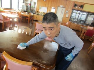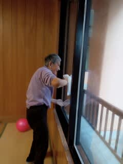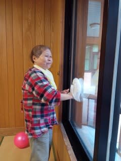 食堂や部屋の窓ふきを利用者様がお手伝いしてくださり、綺麗になりました。