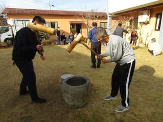 もち米も蒸しあがり、いざっ餅つき開始~さすが男性利用者さんイイ感じです