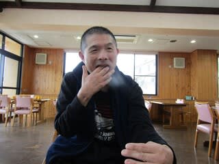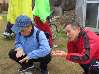 焚火で焼き芋を焼いている間、何やらお話をされています。