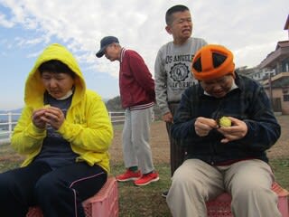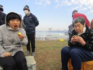 今日は、あかつき学園の方と焼き芋交流会を行いました。