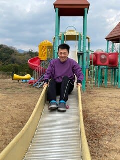 今日は「ふれあい広場」へ行き、おやつを食べた後に公園まで歩き遊んできました。