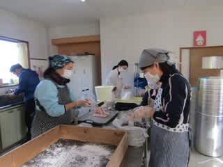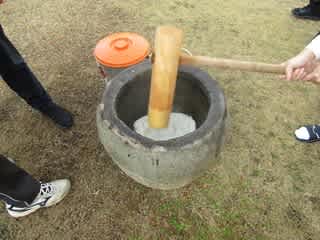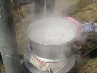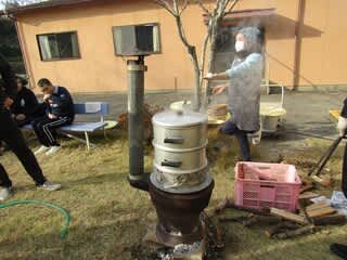 職員の方が、もち米を蒸したりと準備してくださいました。