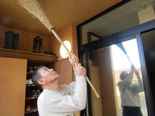 高い所にあるほこりやクモの巣を払い、きれいにしました