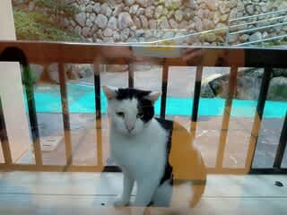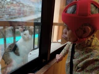 窓の外に、かわいい猫が見学にいらっしゃってました