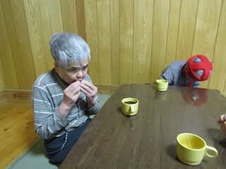 さぁ、お待ちかねの喫茶の時間。今日のお菓子は?楽しいひと時です。