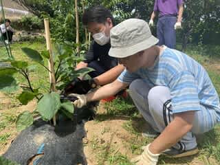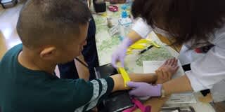 散歩の後は、水分補給を行い、それぞれの作業班に向かいました