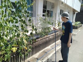 今日の活動では、夏野菜のお世話とトマトの収穫~味見でした(笑)