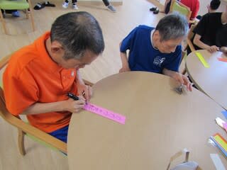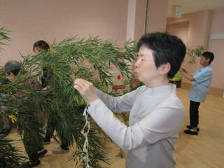 飾り制作や短冊作りなどを行い、自分たちで笹に飾り付けていきます。