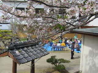 3/31(水)令和2年度最後の日、園庭でお花見をしました。