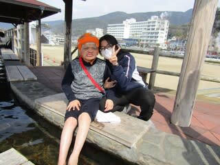 3月11日、グループ活動、第一班は、小浜の足湯へ出かけました♨