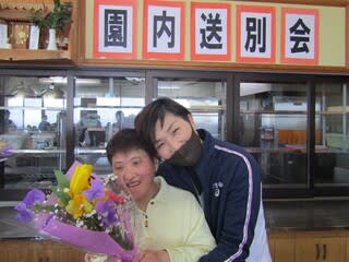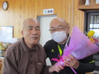 利用者さんから対象者のお二人へ「お世話になりました」と花束贈呈