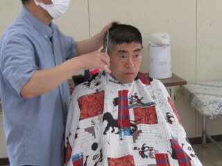 3月19日に町内の理容師さんに来園して頂き、散髪を行いました
