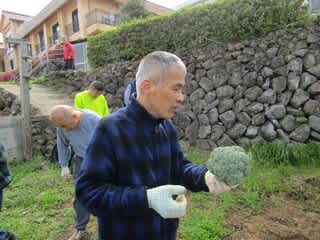 皆さんこんにちは随分と春らしくなってきた今日この頃・・・ちらほらと桜も見れるようになって来ましたね本日の日中活動では冬に植えていた「ブロッコリー」の収穫に成功しました