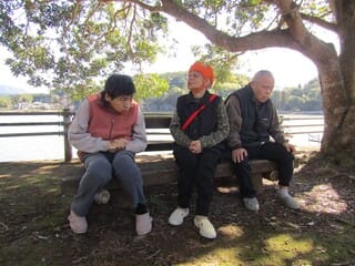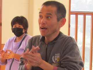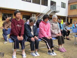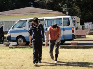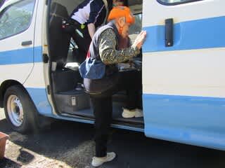 いこい班では、機能訓練運動を主体に、活動しており、車を降りるところから始まります。