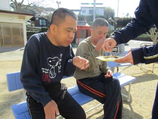 今日は春がそこまで来たようなポカポカ陽気でした中庭に出て日向ぼっこをしながら沢山いただきました。2月も元気に頑張りましょう