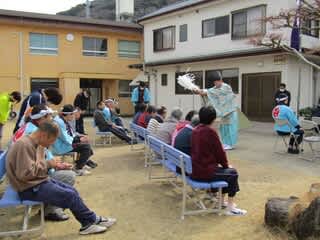 神事では利用者代表が玉串をあげ、皆さんであけぼの学園神社へ参拝しました