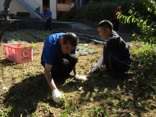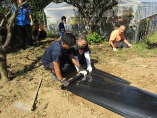 自然散策後、戸外班の方は「除草作業、畑のマルチ張り」を頑張りました。
