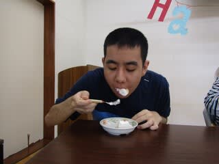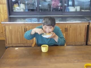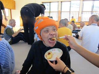 歌の後は楽しみの🎂ケーキの時間です「いただきま~~す」