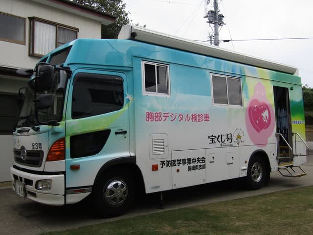 検診車が来ましたね~、緊張している方もいますが…。