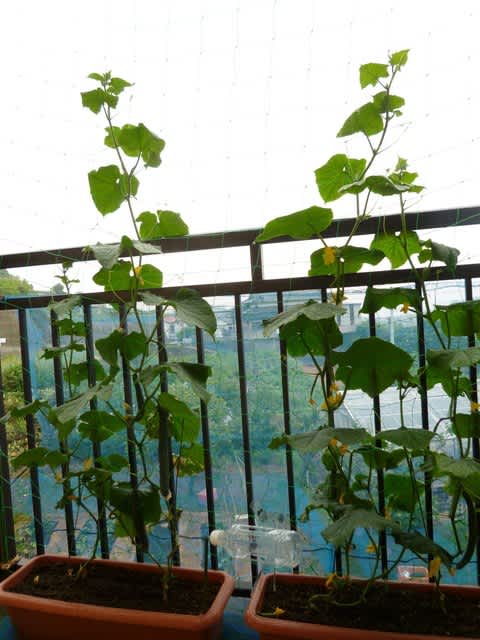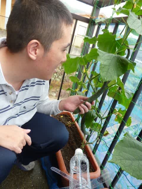 『グリーンカーテンを作ろう!!』ときゅうりを栽培しています