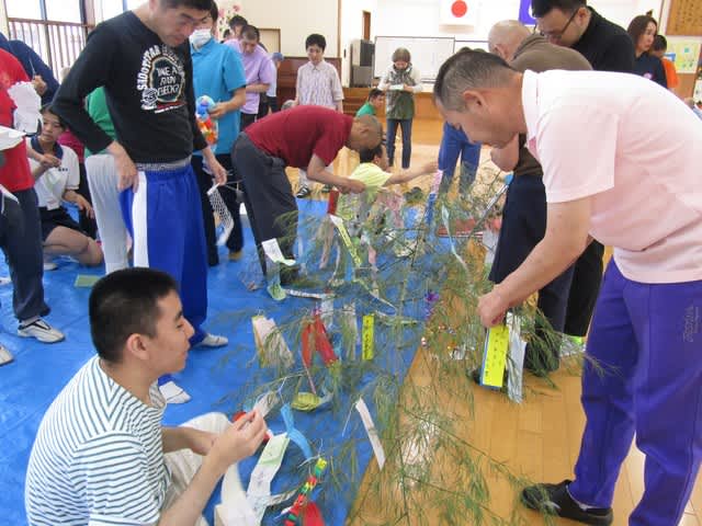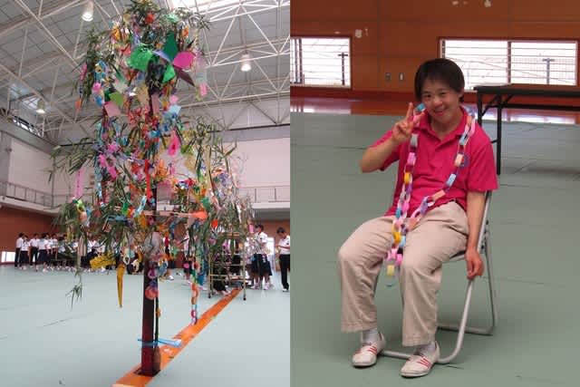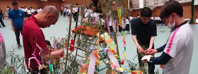 今日は南串山中学校の生徒さん達と七夕交流会を行いました。